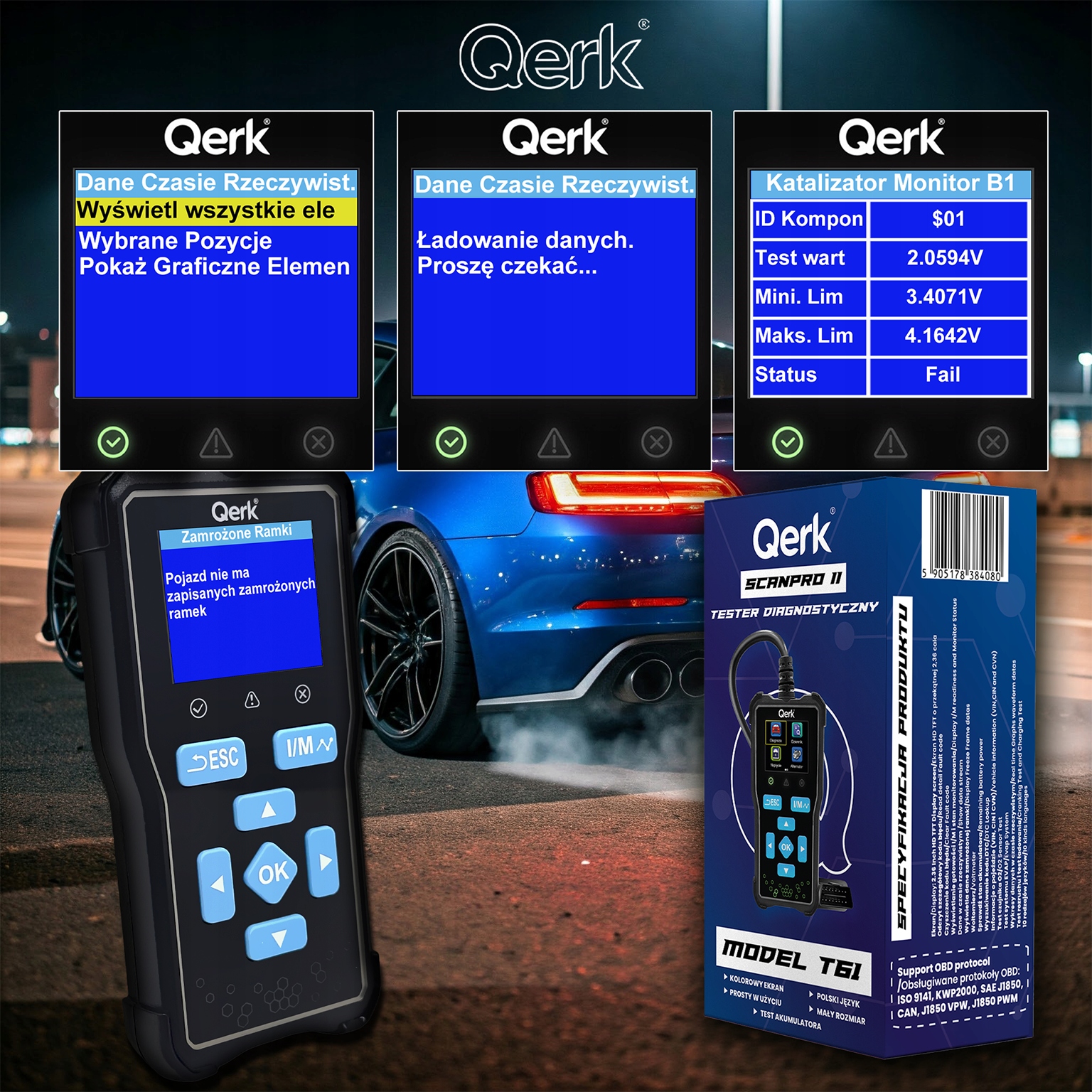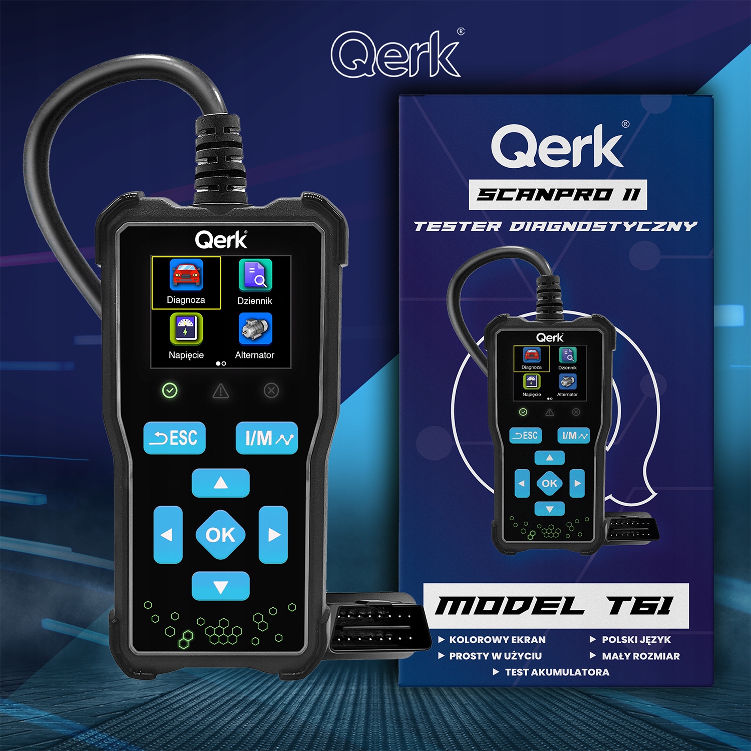 ⚙️ Tester diagnostyczny Qerk® T61 jest urządzeniem uniwersalnym i łączy się z niemal wszystkimi modelami pojazdów wyposażonych w ustandaryzowane złącze OBD2 / EOBD.