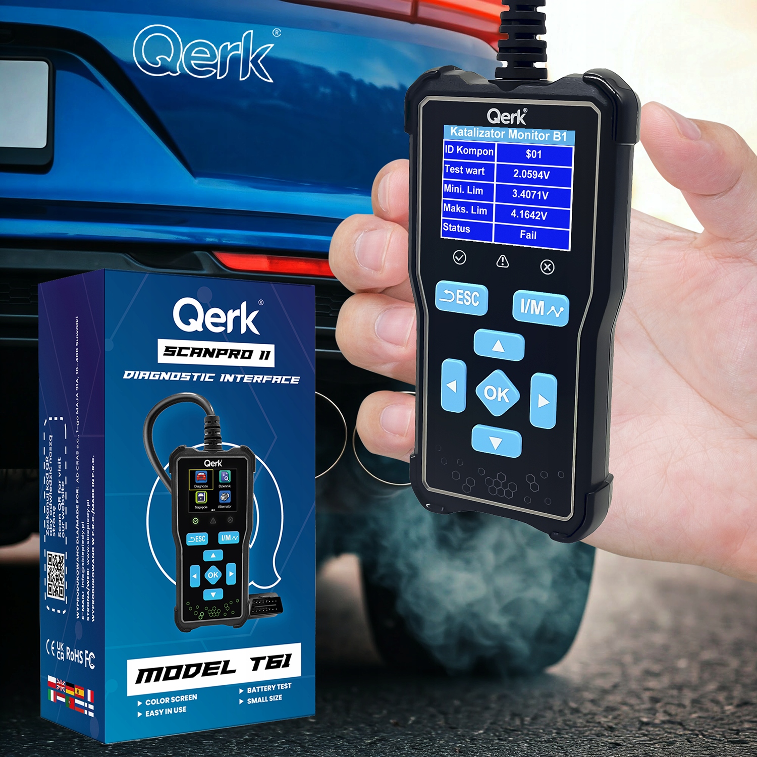 Qerk® T61 to wygodny i praktyczny tester diagnostyczny, który pozwala na samodzielną diagnostykę pojazdu. Dzięki wsparciu dla 10 języków, czytelnemu ekranowi i prostemu menu, urządzenie jest idealne dla każdego, kto chce monitorować stan swojego auta bez skomplikowanych procedur. Dołączona instrukcja w wielu językach sprawia, że użytkowanie testera jest intuicyjne i dostępne dla szerokiego grona kierowców. Idealny wybór, by zyskać większą kontrolę nad stanem technicznym samochodu!