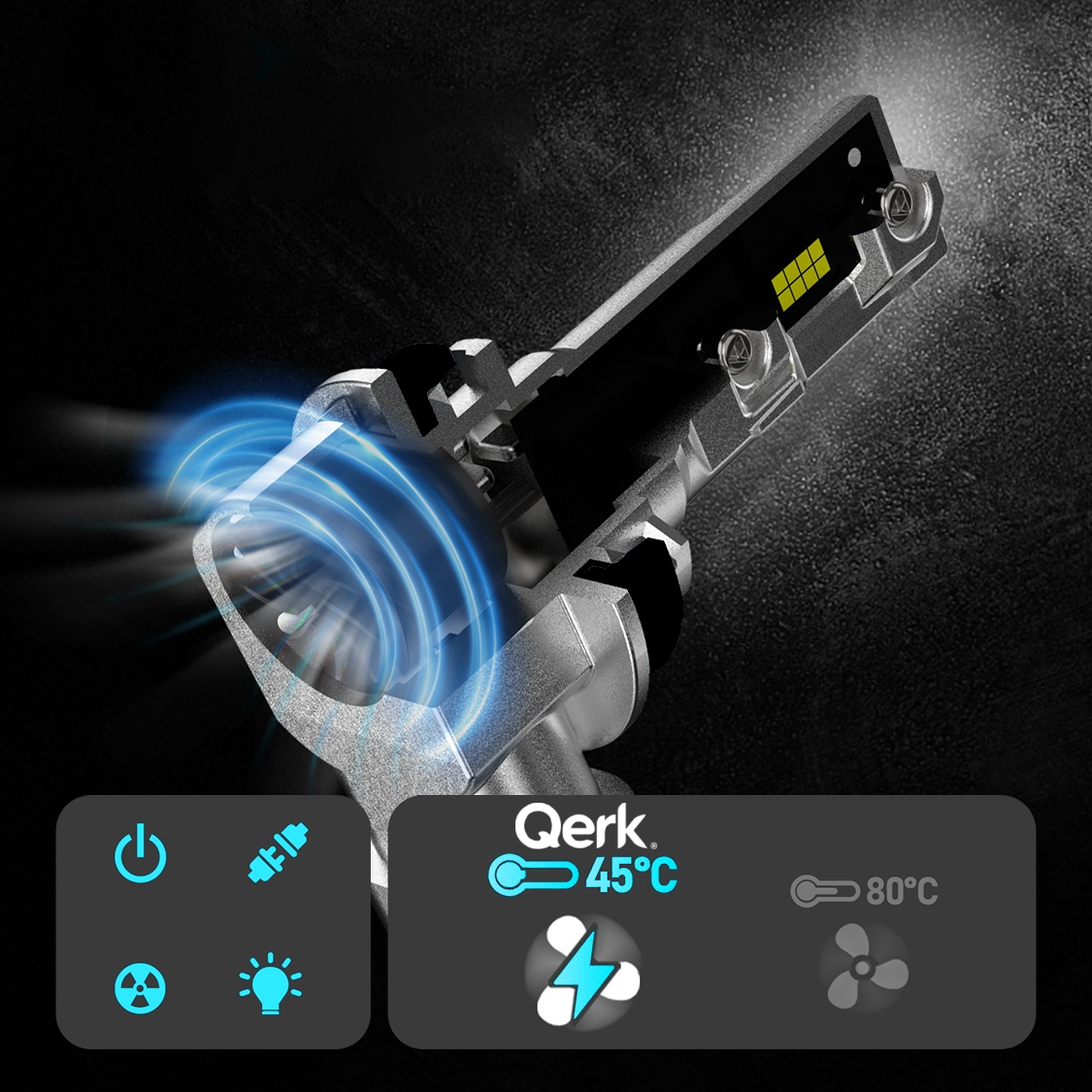 Dzięki umieszczeniu turbo radiatora w korpusie retrofitu, możliwy jest montaż w bliźniaczy sposób, jak zwykłej żarówki halogenowej. Nie ma już konieczności stosowania adapterów dla gniazd z nieszablonowym montażem. Jest to nowy model o konstrukcji z turbowentylatorem umieszczonym na dole konstrukcji, co umożliwia zastosowanie jeszcze mocniejszych chipów CHIP LED QERK® Q11 o niespotykanym dotąd strumieniu światła.